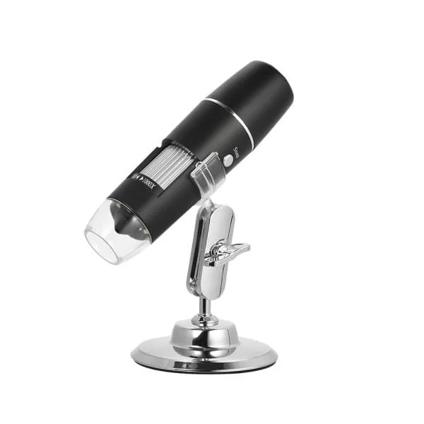 میکروسکوپ دیجیتال بزرگنمایی 0 تا 1000 برابر فاصله تا کار 0 تا 10 متر دارای باتری داخلی که بدون اتصال به برق هم کار میکند اتصال به Android و IOS از طریق WiFi دارای نرم افزار که لینک دانلود آن داخل بسته بندی دستگاه است