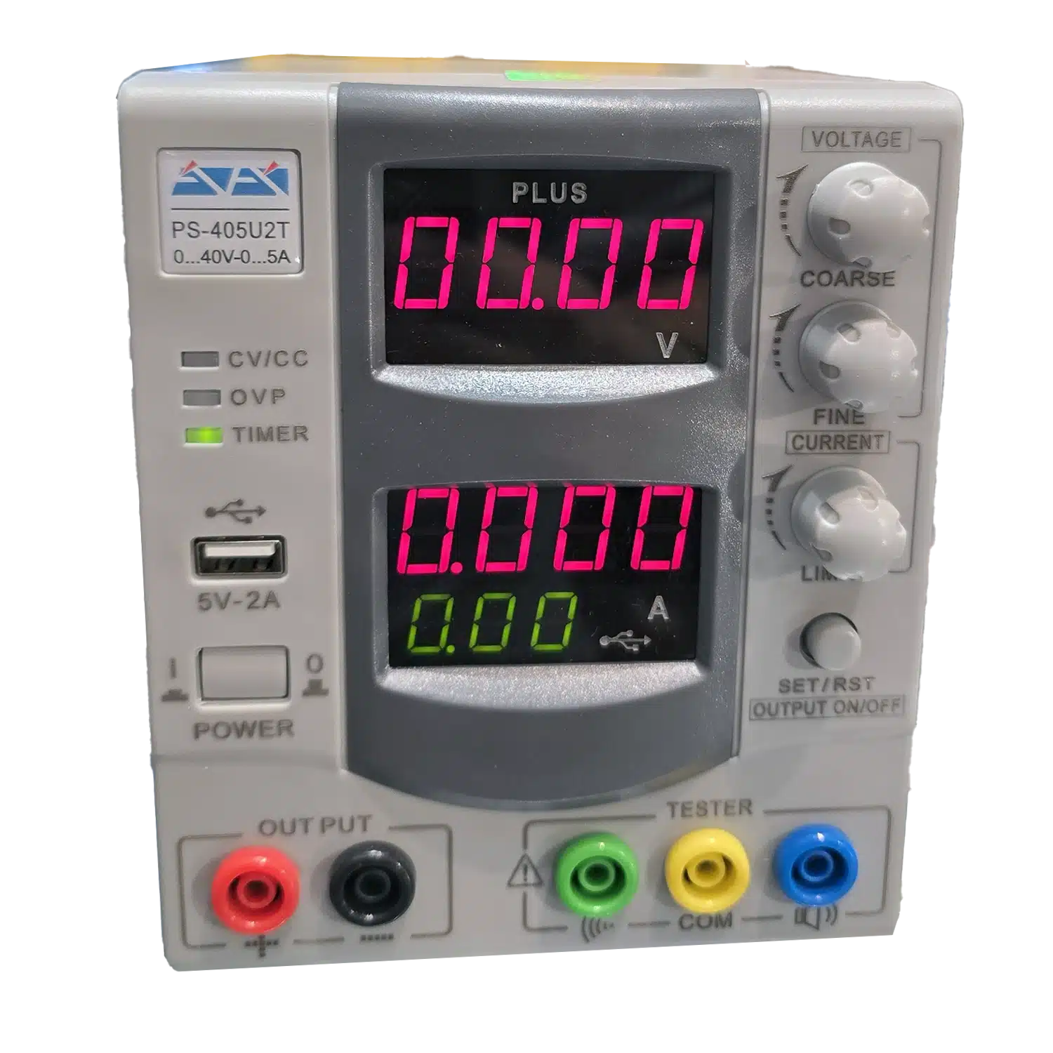 سه ترمینال پایین دستگاه (قرمز، مشکی برای خروجی – و ترمینالهای تستر سمت راست) کاملاً سازگار با پرابهای سوسماری و پرابهای منبع تغذیه هستند و بدون مشکل متصل میشن.
