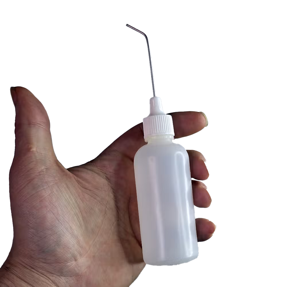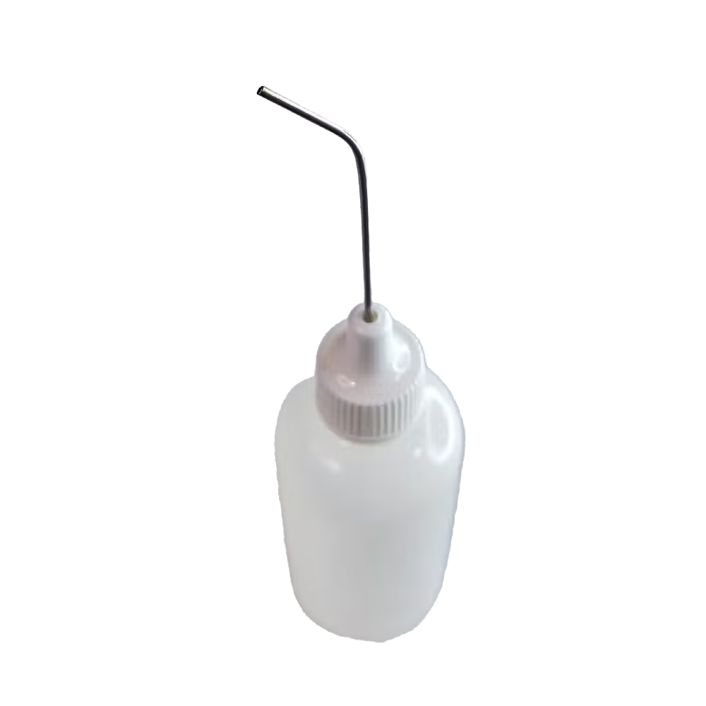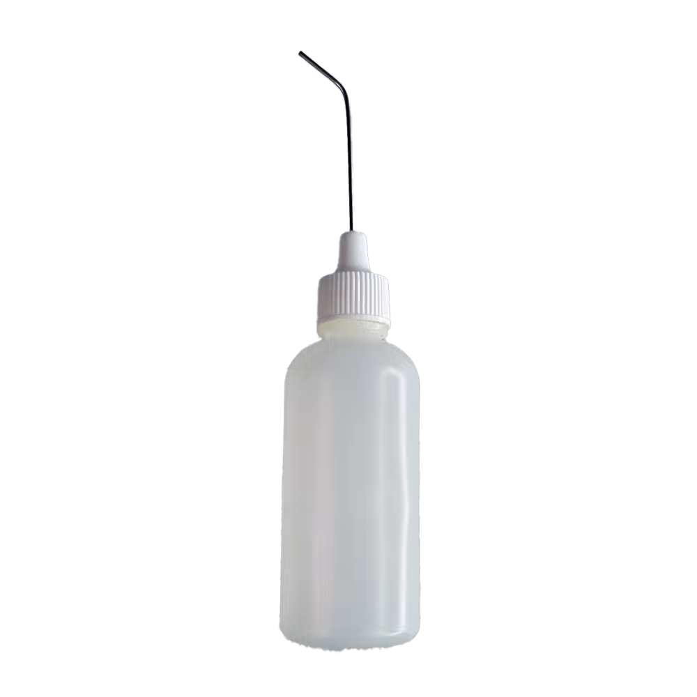 معادل انگلیسی: Angled Long Needle Alcohol Dispenser Bottle, 100 ml (LDPE Body, 1.5″ Bent Stainless Blunt Tip)