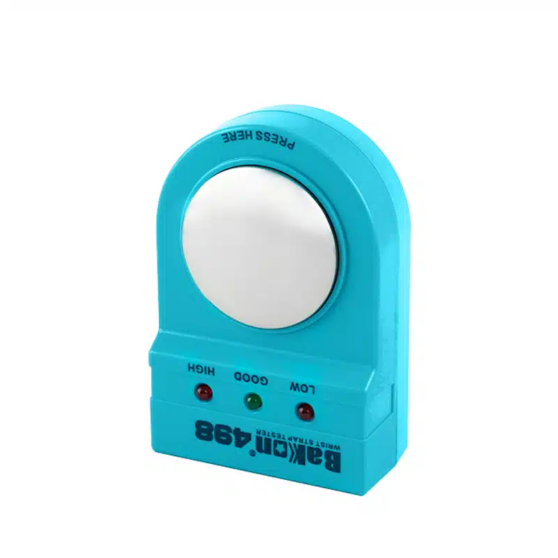 دستگاه تست دستبند آنتی استاتیک باکون مدل BAKON BK-498 یک تستر دقیق و قابل‌حمل برای چک‌کردن سلامت اتصال دستبند و مسیر ارت در خطوط مونتاژ و تعمیرات الکترونیک است. این مدل با بدنه مستحکم، پَد لمسی استیل و نشانگرهای LED سه‌حالته طراحی شده تا در چند ثانیه مطمئن شوید مقاومت حلقه مچ‌بند شما در بازه ایمن قرار دارد و به بردها آسیب استاتیکی وارد نمی‌شود. اگر کارگاه، آزمایشگاه، واحد QC یا میز تعمیر موبایل دارید، BK-498 همان ابزاری‌ست که هر روز خیال‌تان را راحت می‌کند.