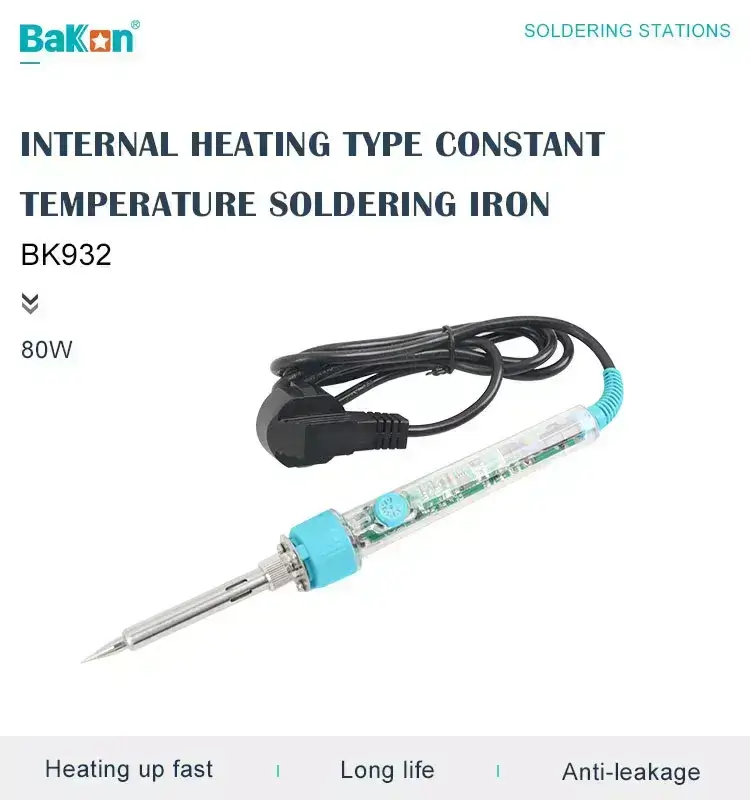 هویه 80 وات باکون مدل Bakon BK-932 یکی از بهترین ابزارهای لحیم‌کاری برای تعمیرات الکترونیکی، پروژه‌های DIY، و کارهای صنعتی است. این هویه با قابلیت‌های پیشرفته و طراحی ارگونومیک، انتخابی مناسب برای حرفه‌ای‌ها و علاقه‌مندان به الکترونیک محسوب می‌شود. در ادامه به بررسی ویژگی‌ها و مشخصات این محصول می‌پردازیم.