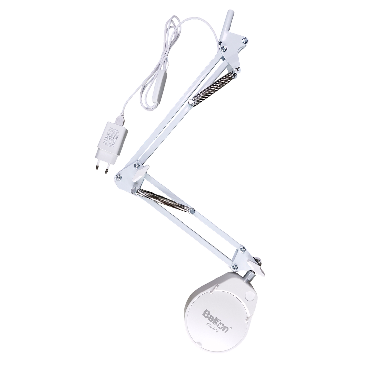 ذره بین گیره دار کنار میزی باکون مدل BAKON BKL4004 برای کارهای ظریف مثل تعمیرات الکترونیک و لحیم‌کاری SMD، طلاسازی، حکاکی، ماکت‌سازی و آزمایشگاه طراحی شده است. لنز شیشه‌ای ۹۷ میلی‌متری با بزرگنمایی ۱۰ برابر واقعی، تصویر شفاف و کم‌اعوجاج می‌دهد؛ حلقه‌ی ۳۸ LED دور لنز، سطح کار را یکنواخت و بدون سایه روشن می‌کند و با دیمر می‌توانید شدت نور را دقیق تنظیم کنید. بازوی چندبخشی فنردار به شما اجازه می‌دهد هد را در هر زاویه‌ای ثابت نگه دارید و گیره‌ی رومیزی هم با اشغال حداقل فضا، روی اکثر میزها محکم می‌شود. این ترکیب باعث می‌شود در طول کار طولانی، چشم‌ها کمتر خسته شوند و خطاها کاهش یابد.