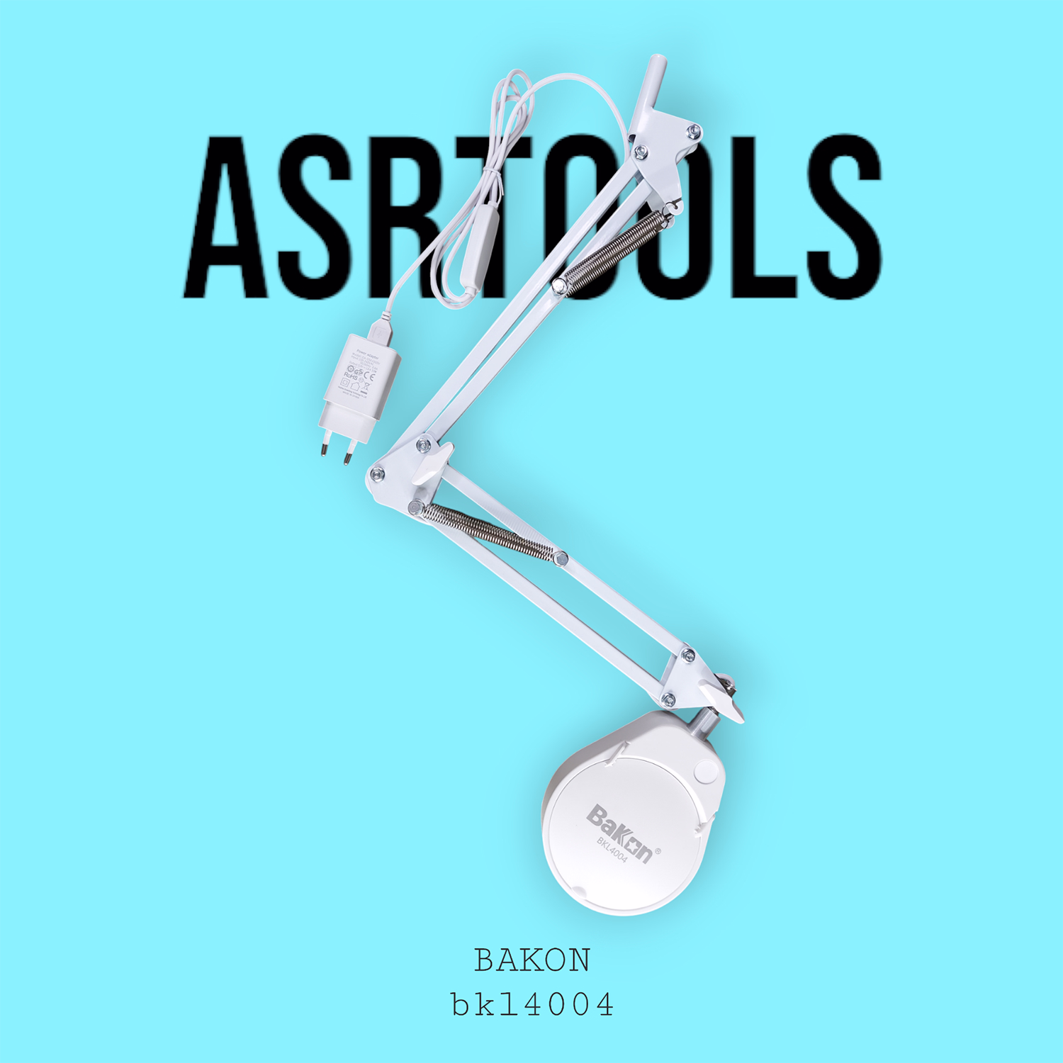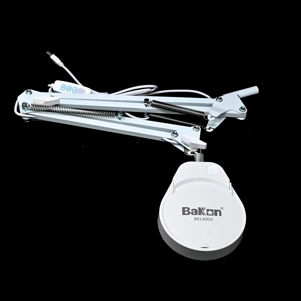 • BKL4004 (این مدل): 10×، لنز Ø97 mm، 38 LED، بازوی ~50 cm، تغذیه USB/AC — جمع‌وجور و اقتصادی برای میز تعمیرات.