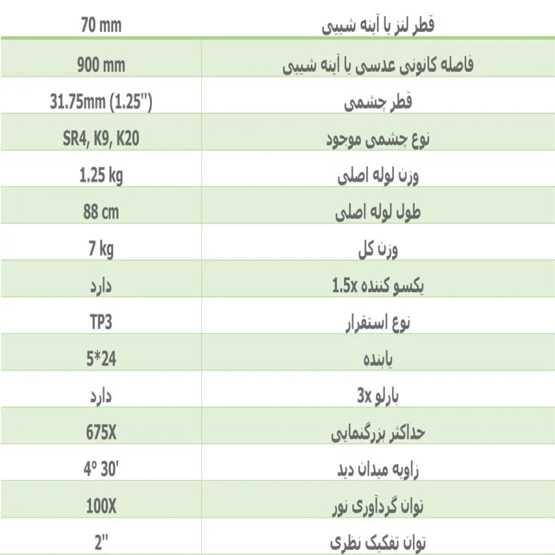 تلسکوپ کامار مدل CAMAR CRG 70900 دارای مشخصات فنی زیر است: