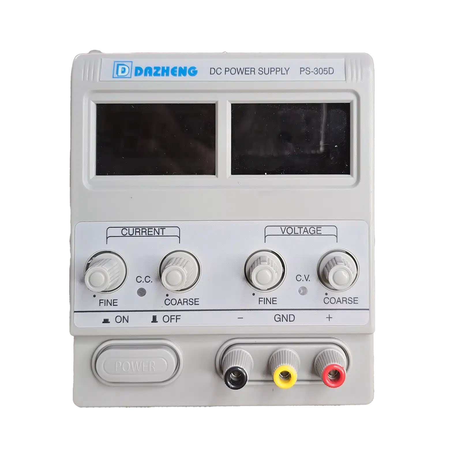 DAZHENG PS-305D NEW 2025 (Buzzer Version) – 0–30V DC, 0–5A linear regulated bench power supply with dual LED displays (V/A), CV/CC modes, short‑circuit protection, 110/220V input selector, rear cooling fan, triple binding posts (+/–/GND), metal enclosure 260×125×155 mm, ~4.7 kg.