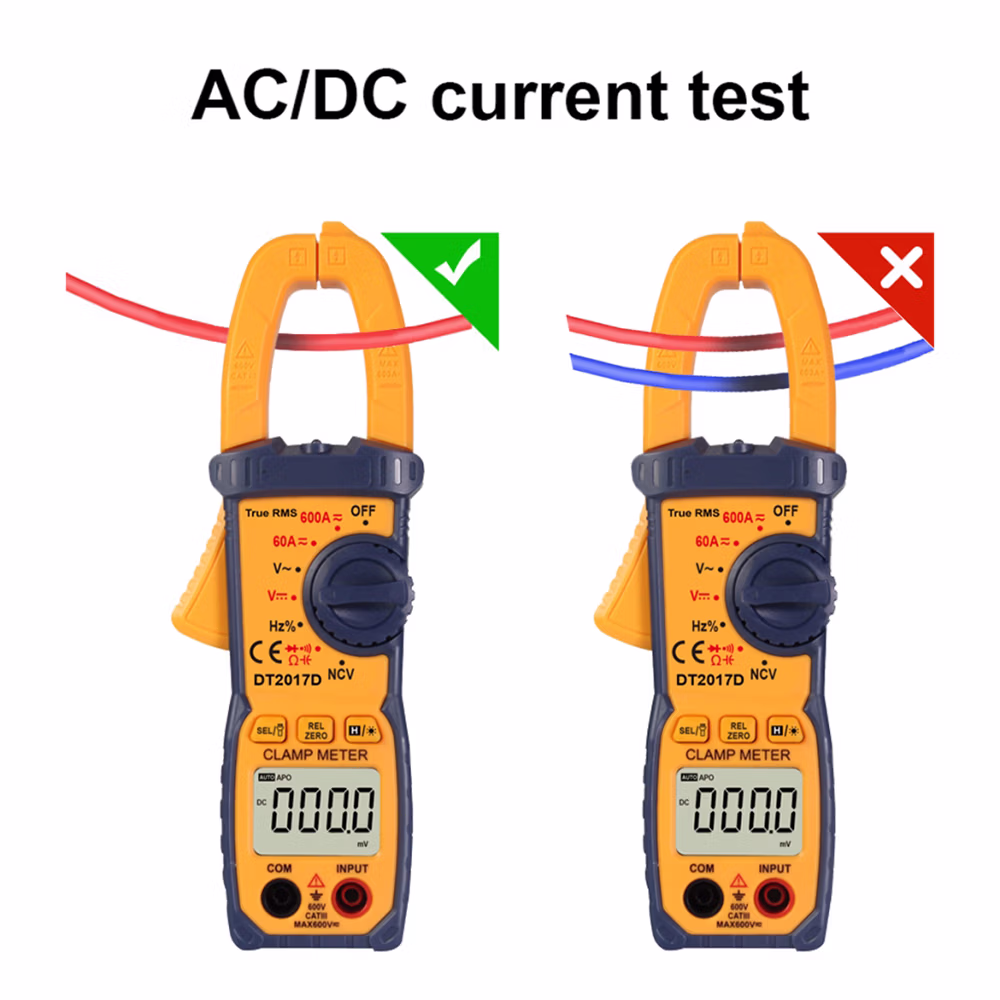 نکته: برای اندازه‌گیری صحیح جریان DC جهت‌گیری صحیح سیم و صفر کردن اولیه (در مدل‌های دارای تابع Zero) اهمیت دارد.