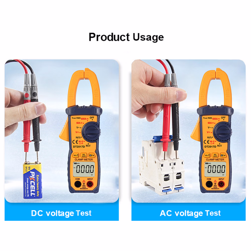 • در قیاس با مولتی‌متر دستی بدون انبر: DT2017D اندازه‌گیری جریان‌های بالا را بدون قطع مدار انجام می‌دهد؛ کاری که مولتی‌مترهای پرتابل معمولاً با سری‌کردن و در رنج‌های محدود انجام می‌دهند.