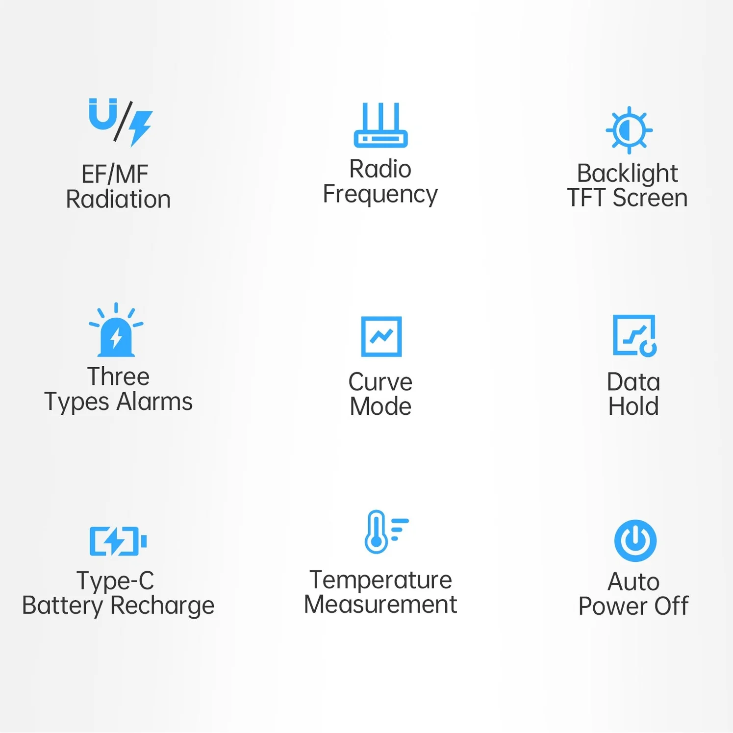 FNIRSI ERD-10 E-Field, M-Field, RF, Temp رنگی ۲.۴ اینچ TFT نور، ویبره، رنگ 1000 mAh Type-C بالا (±1 V/m)