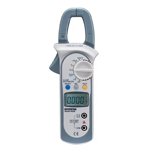 • GW Instek GCM‑403 (همین مدل): 4000 کانت، اندازه‌گیری AC/DC تا 600A/600V، بدون True RMS، فک 28mm، باتری 9V، مناسب برای کاربری عمومی، سرویس تأسیسات و نگهداری.