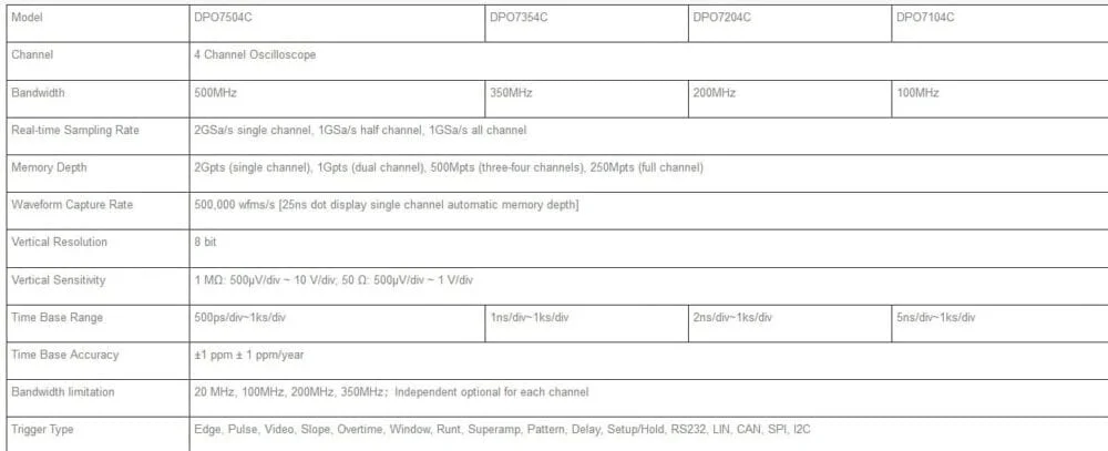 جدول مشخصات اسیلوسکوپ دیجیتالی رومیزی هانتک مدل HANTEK DPO-7104C: