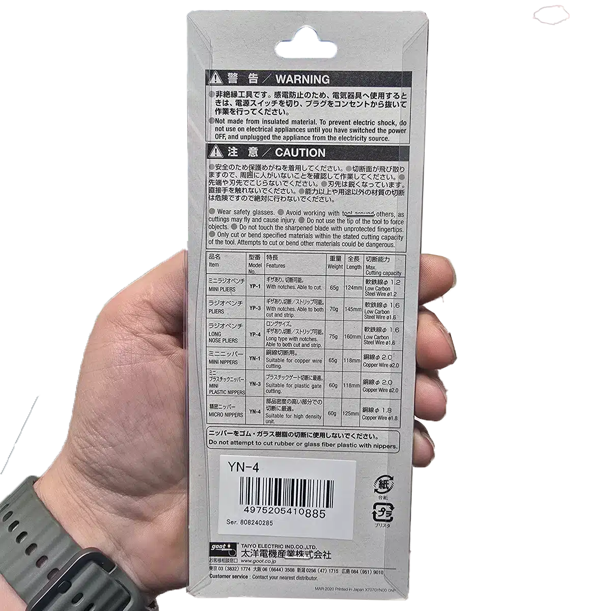 Japan-GOOT-yn-4-Mini-Pliers-Diagonal-Cutter-Long-Nose-Nippers-Cutting-Plastic-Soft-Wire-0-سیم-چین-گات-مدل-goot-YN-4-سایز-4.6-اینچ