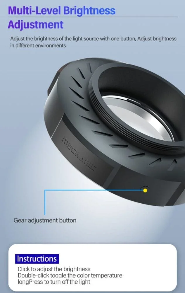 • روشنایی منبع نور را با یک دکمه تنظیم کنید، روشنایی را در محیط های مختلف تنظیم کنید