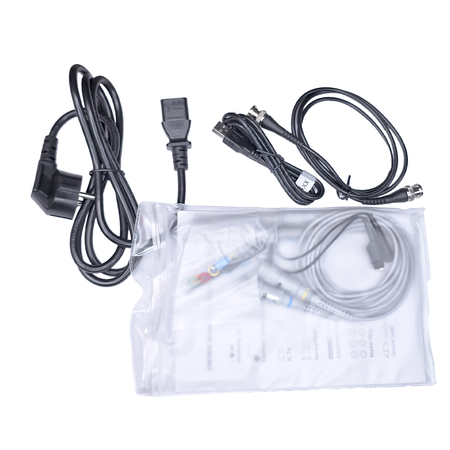 • اقلام همراه: ۲ عدد پروب، کابل USB، کابل برق، CD نرم‌افزار، دفترچه راهنما، کیف حمل