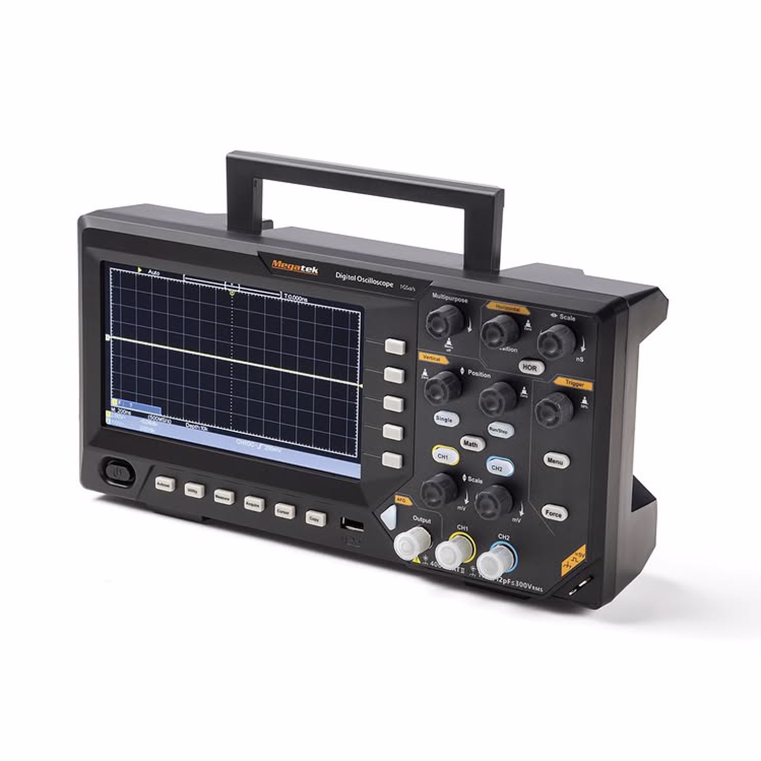 • English: MEGATEK 2D20 Digital Oscilloscope, 200 MHz, 2CH, 1GS/s, 20M Memory, FFT, USB Host/Device, Optional 25 MHz AFG