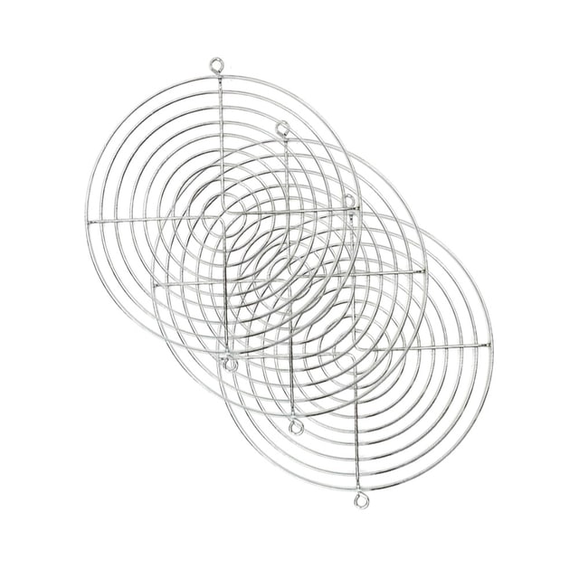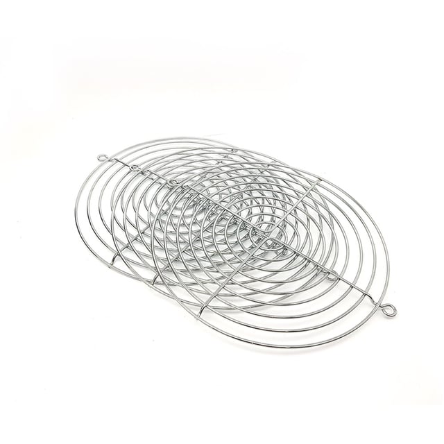 محافظ فن فلزی مدل 170150 از یک شبکه دایره‌ای و چهار پایه نگهدارنده تشکیل شده که از مفتول‌های مقاوم ساخته شده‌اند. سطح براق و ضدزنگ آن جلوه‌ای صنعتی و حرفه‌ای به تجهیزات می‌دهد. حلقه‌های دایره‌ای داخلی با فواصل مهندسی‌شده، ضمن عبور مؤثر جریان هوا، ایمنی مطلوبی در برابر برخورد مستقیم فراهم می‌کنند.