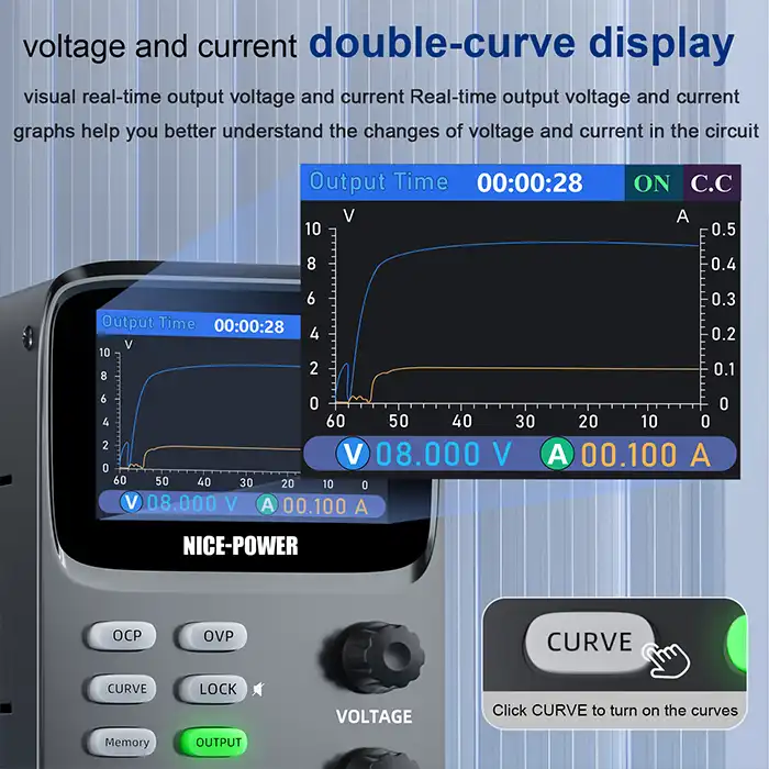 برخلاف بسیاری از مدل‌های اقتصادی که فاقد نمایشگر رنگی و منحنی ولتاژ-جریان هستند، SPPS-K305 امکان نمایش گرافی و مشاهده رفتار بار را هم فراهم می‌کند.