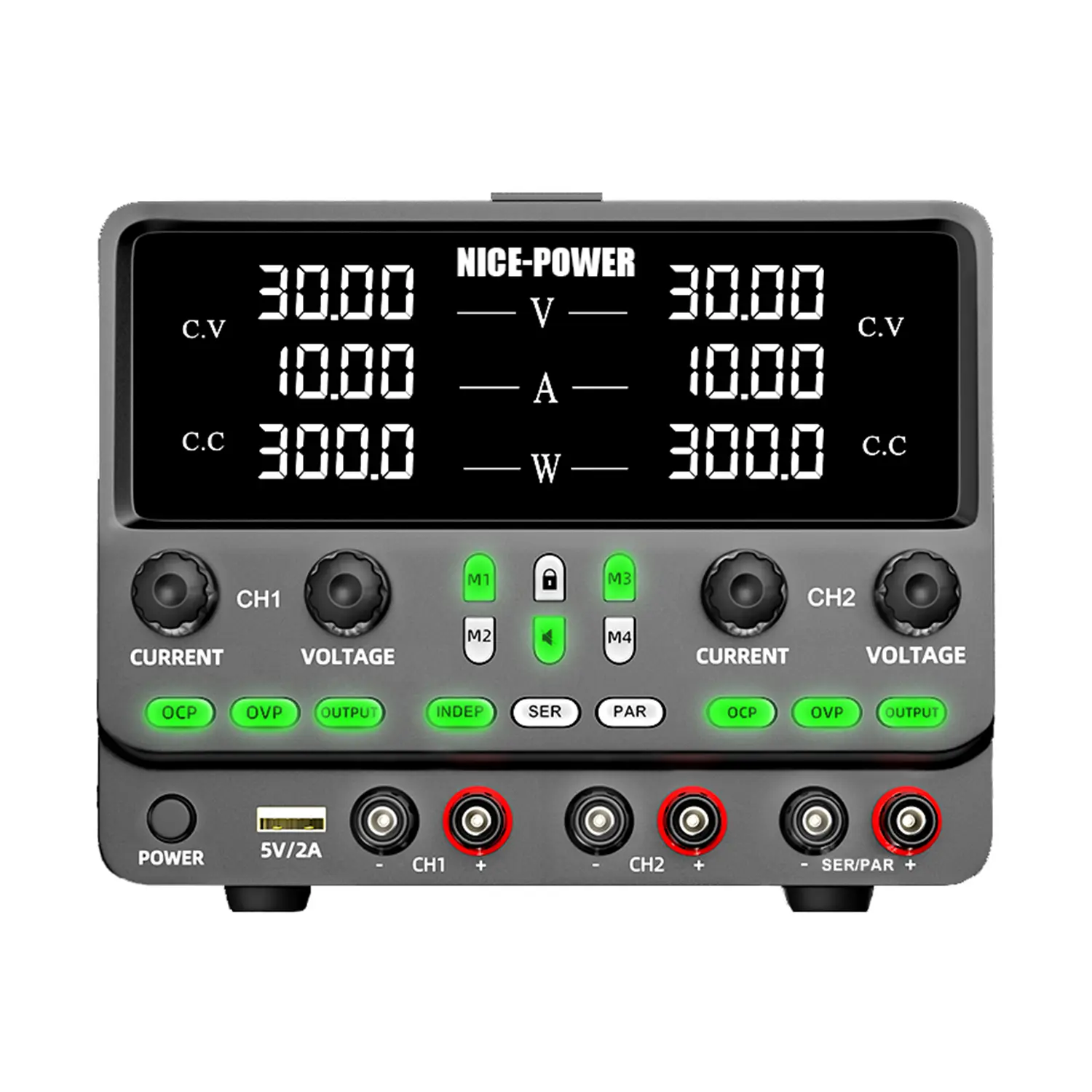 منبع تغذیه دوبل تراکینگ نایس پاور مدل NICE POWER SPPS3010-2KD، یک پاور ساپلای دو کاناله کاملاً حرفه‌ای و هوشمند است که با قابلیت تنظیم ولتاژ تا ۳۰ ولت و جریان تا ۱۰ آمپر برای هر کانال، نیاز هر آزمایشگاه، کارگاه و تعمیرکار حرفه‌ای را به بهترین شکل پاسخ می‌دهد. این مدل با امکان کار در حالت دوبل (دو کانال مستقل)، سری و موازی تنها با فشردن یک دکمه، قابلیت منحصر به فردی در ارائه ولتاژ و جریان بالا یا ترکیبی و همین‌طور تغذیه همزمان چند پروژه الکترونیکی دارد.
