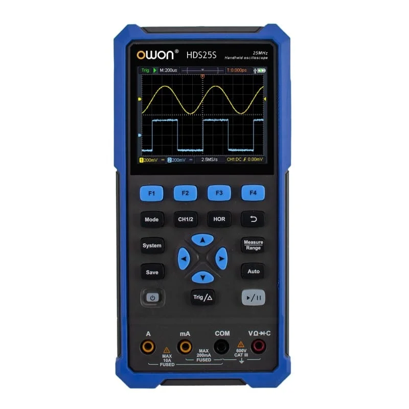 • OWON HDS25: همان پلتفرم با اسیلوسکوپ + مولتی‌متر اما بدون مولد موج. اگر به تزریق سیگنال نیاز ندارید، HDS25 اقتصادی‌تر است.
