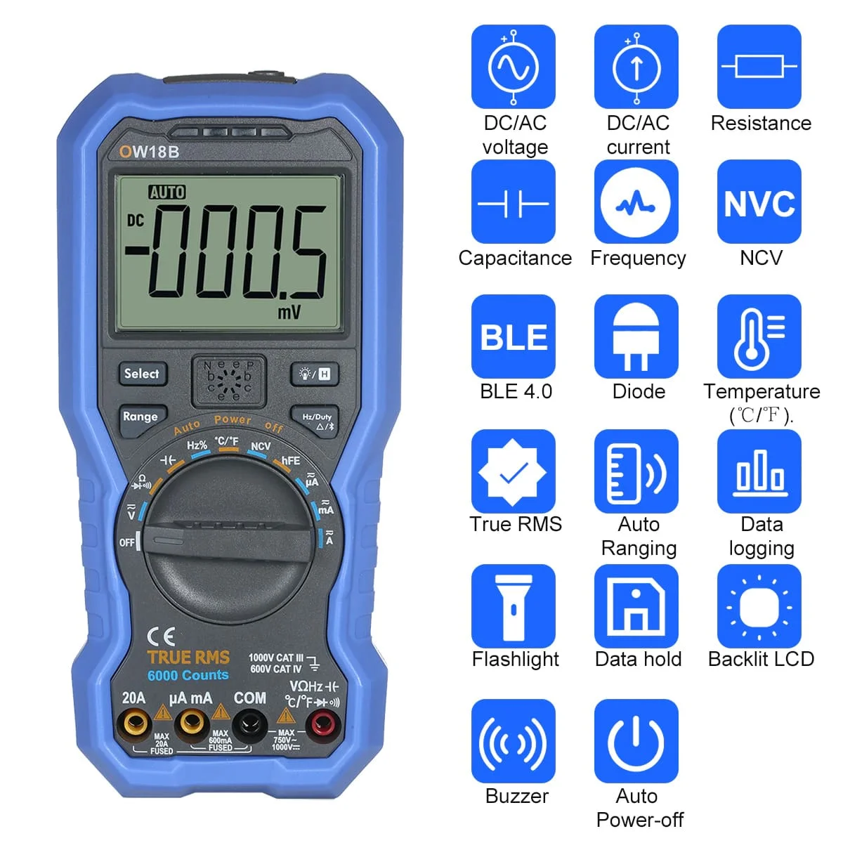 مولتی متر بلوتوث دار و دیتالاگر اوون مدل OWON OW18B دارای مشخصات فنی زیر است: