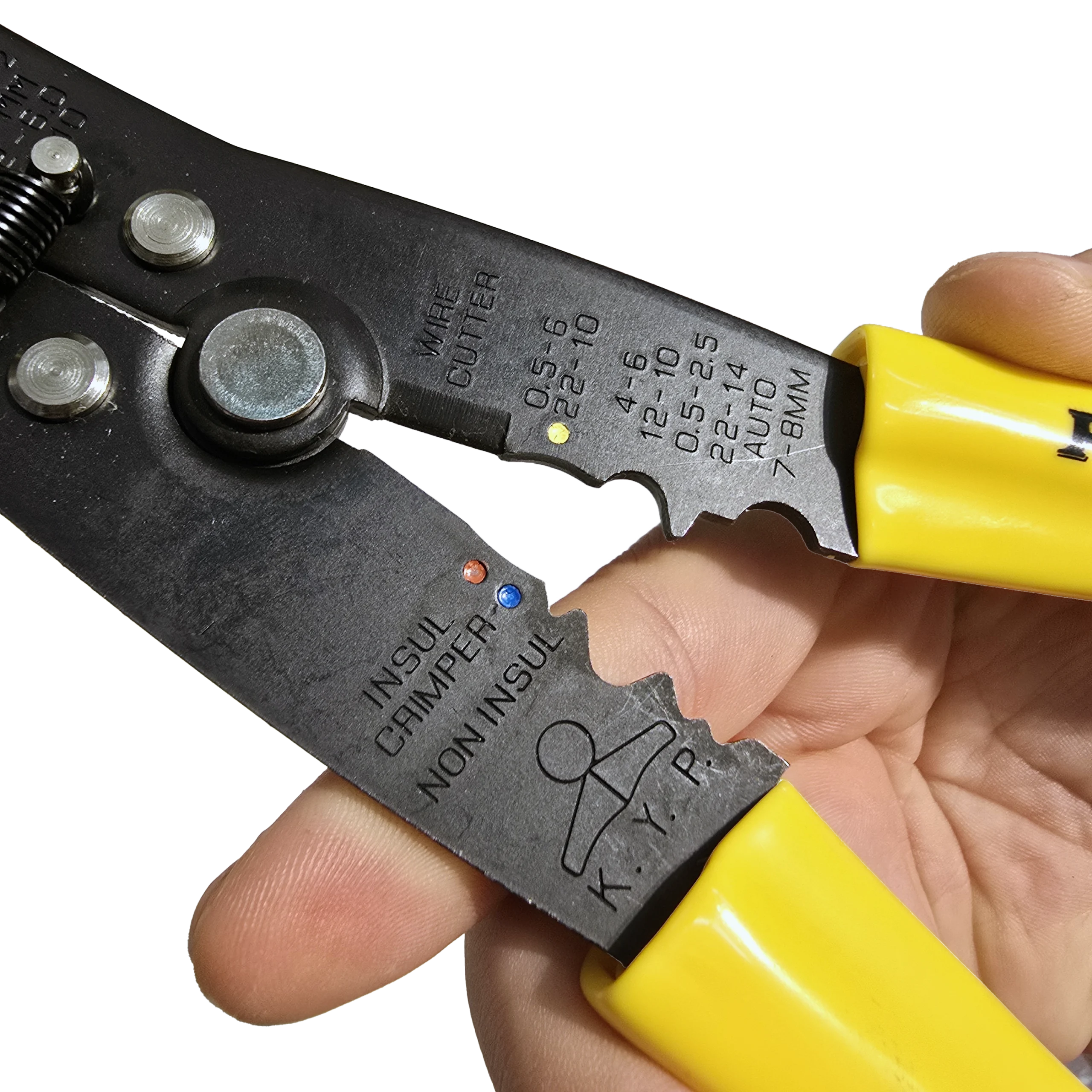 • استفاده آسان و اتوماتیک: با توجه به طراحی اتوماتیک این ابزار، نیازی به تنظیمات پیچیده یا تخصص بالا نیست. تنها کافی است سیم را درون ابزار قرار دهید و دسته‌ها را فشار دهید تا عملیات لخت کردن یا پرس کردن به‌طور خودکار انجام شود. پیچ تنظیم کننده چرخشی نیز امکان لخت کردن سیم‌های نازک‌تر تا سایز 24AWG (0.2mm²) را فراهم می‌کند که برای کار با سیم‌های کوچک بسیار مفید است.