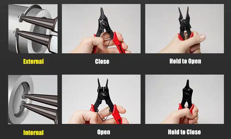 به عبارت بهتر، طبق عکس زیر اگر سری را به قسمت internal وصل کنیم، با فشردن دسته، سری بسته می شود (خار جم کن).