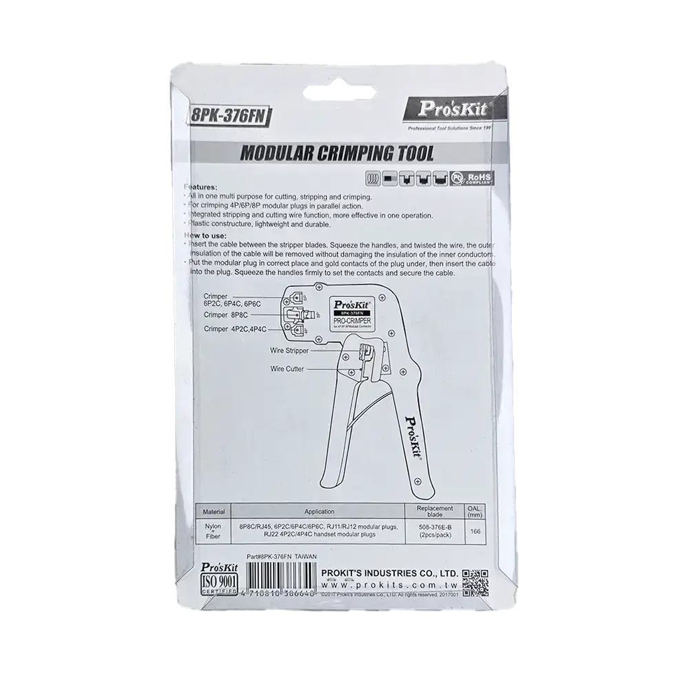 آچار پرس سوکت تلفن و شبکه پروسکیت مدل Proskit 8PK-376FN دارای ویژگی های زیر است: