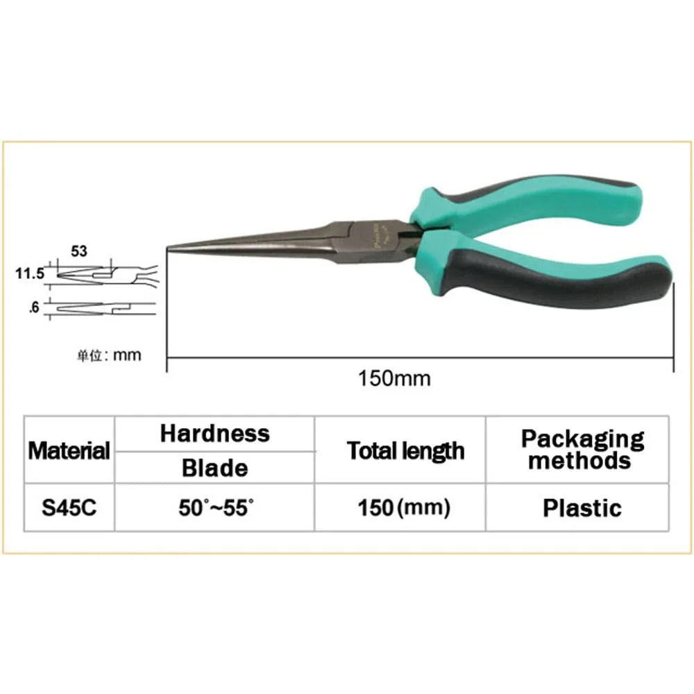 ⚙️ مشخصات فنی و ظاهری انبر دم باریک Proskit PM-746