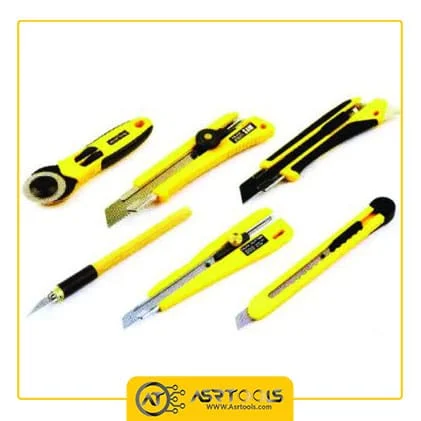 در پوشی از جنس پلاستیک فشرده بر قسمت بالایی کاتر برای جلوگیری از برش دست و همچنین محافظت از تیغ کاتر در نظر گرفته شده است. این محصول دارای 6 تیغ می باشد که یک تیغ روی دستگاه و 5 تیغ آن درون پوشش پلاستیکی قرار دارد.