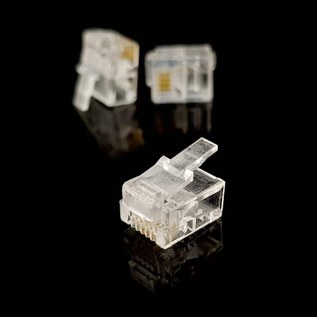 • RJ45 8P8C: مخصوص اترنت شبکه است، نه تلفن. از نظر ابعاد بزرگ‌تر بوده و درگاه آن با RJ11 متفاوت است.