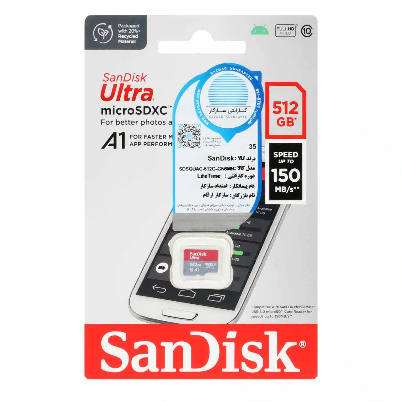 کارت حافظه microSDXC سن دیسک مدل ULTRA کلاس 10 استاندارد U3 سرعت 150MBps ظرفیت 512 گیگابایت