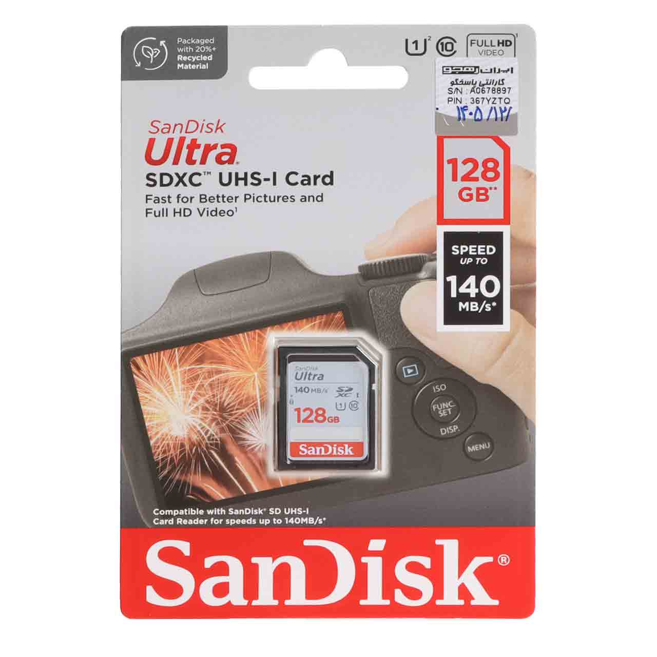 کارت حافظه مخصوص دوربین عکاسی SDXC سن دیسک مدل Ultra کلاس 10 استاندارد UHS-I U1 سرعت 140MB/S ظرفیت 128 گیگابایت