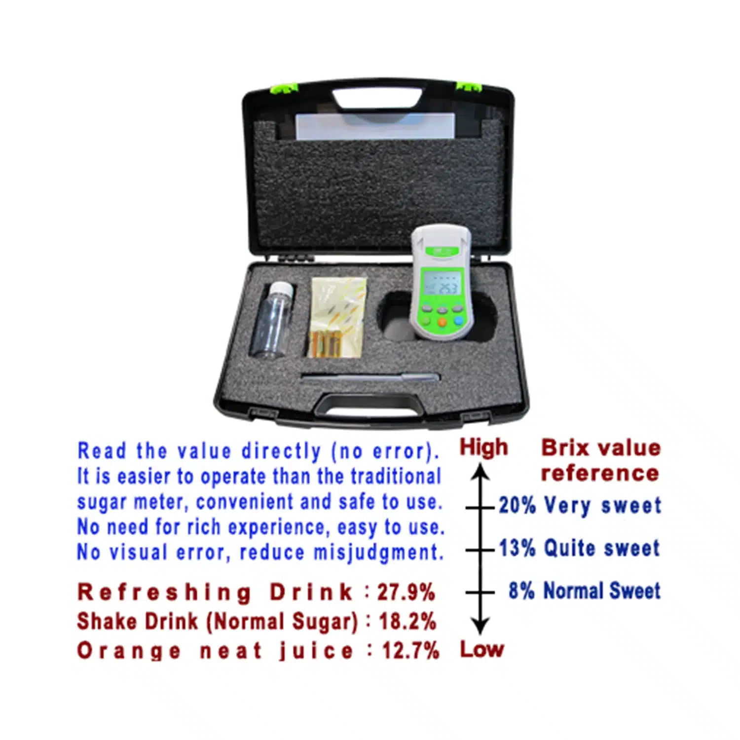 • محدوده بریکس: 0–53 % | دقت: ±0.2 % | رزولوشن: 0.1 %