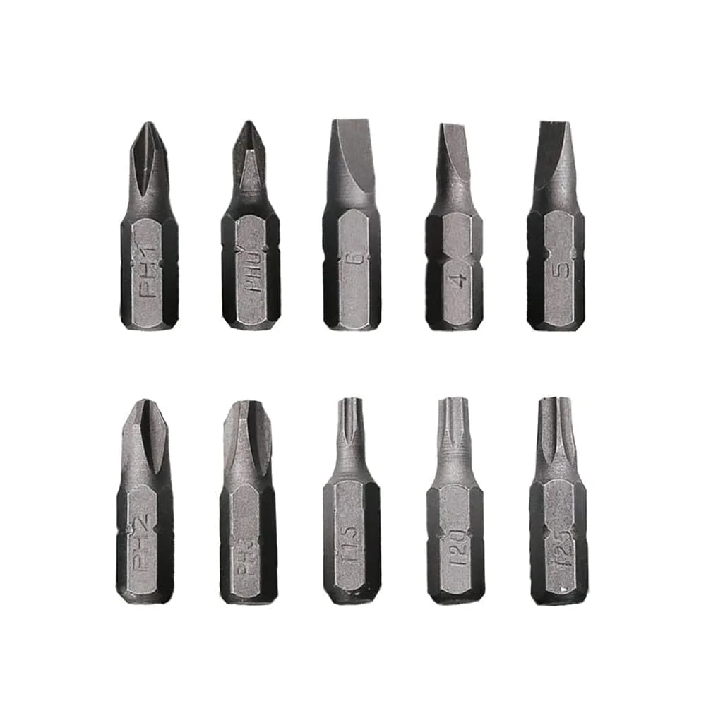 ست نوک پیچ گوشتی 10 عددی مدل Screwdriver Bit 10PCS یک مجموعه کاربردی و باکیفیت برای کسانی است که با پیچ‌گوشتی‌های دستی یا برقی کار می‌کنند. این ست شامل 10 عدد سری پیچ‌گوشتی پرکاربرد در انواع دوسو، چهارسو (PH) و ستاره‌ای (Torx) است که پاسخگوی نیازهای مختلف تعمیراتی، خانگی، صنعتی و الکترونیکی خواهد بود.