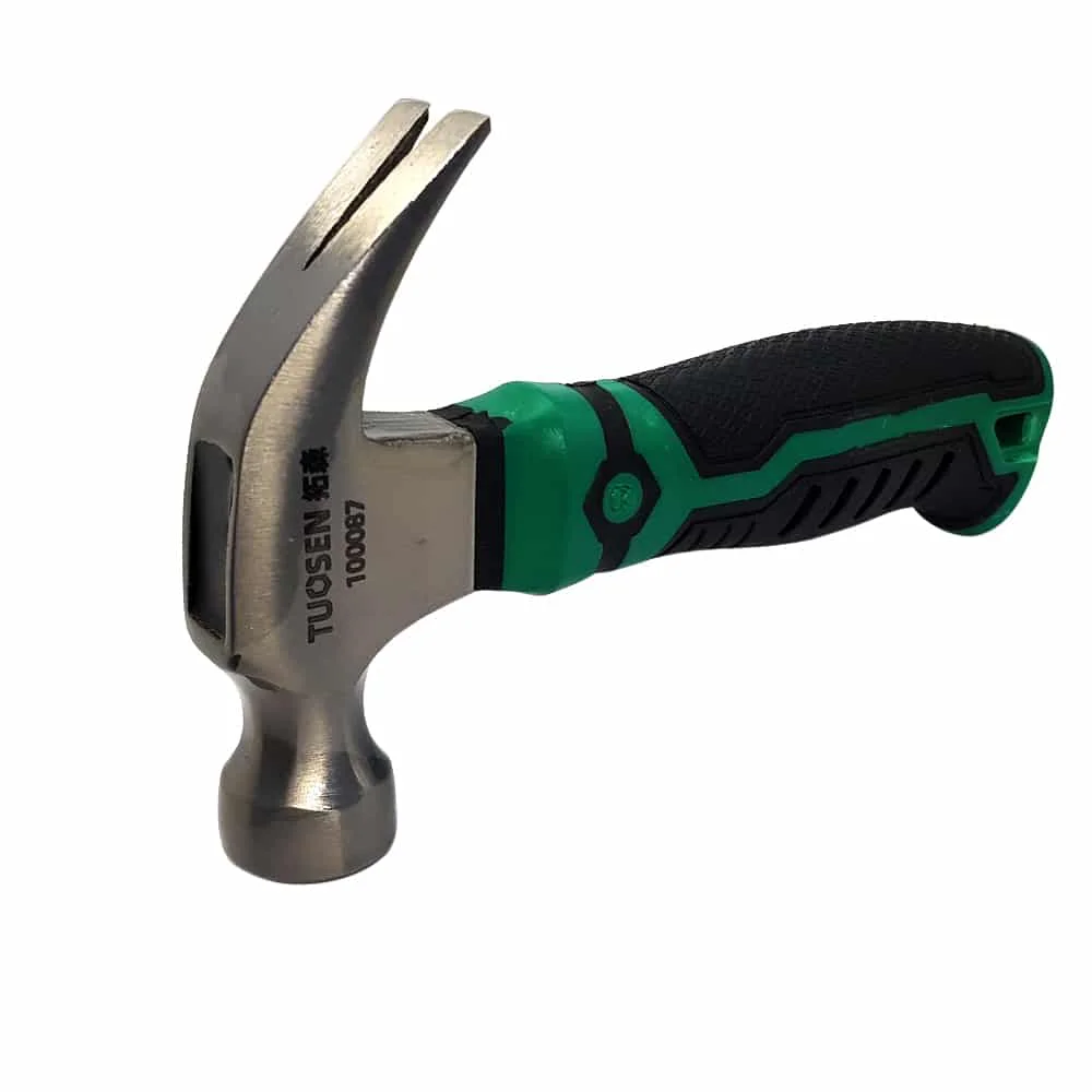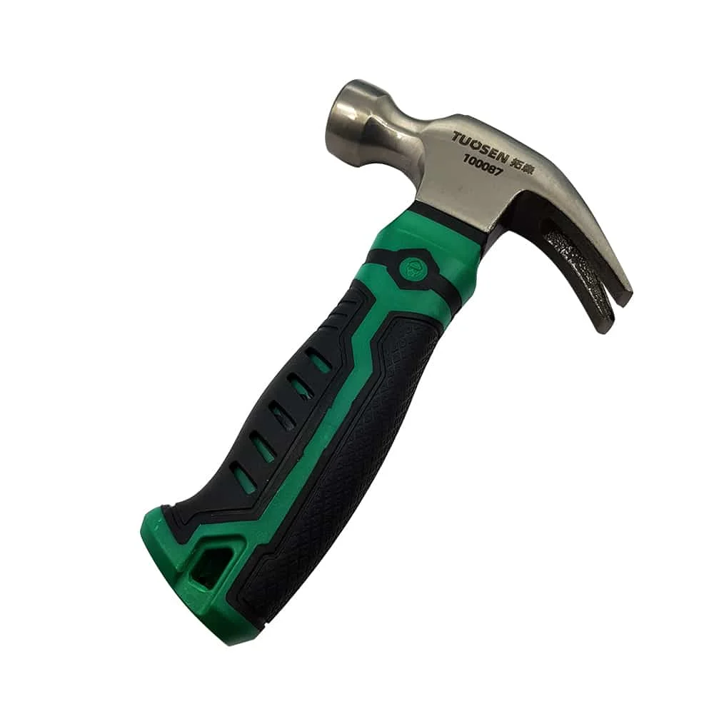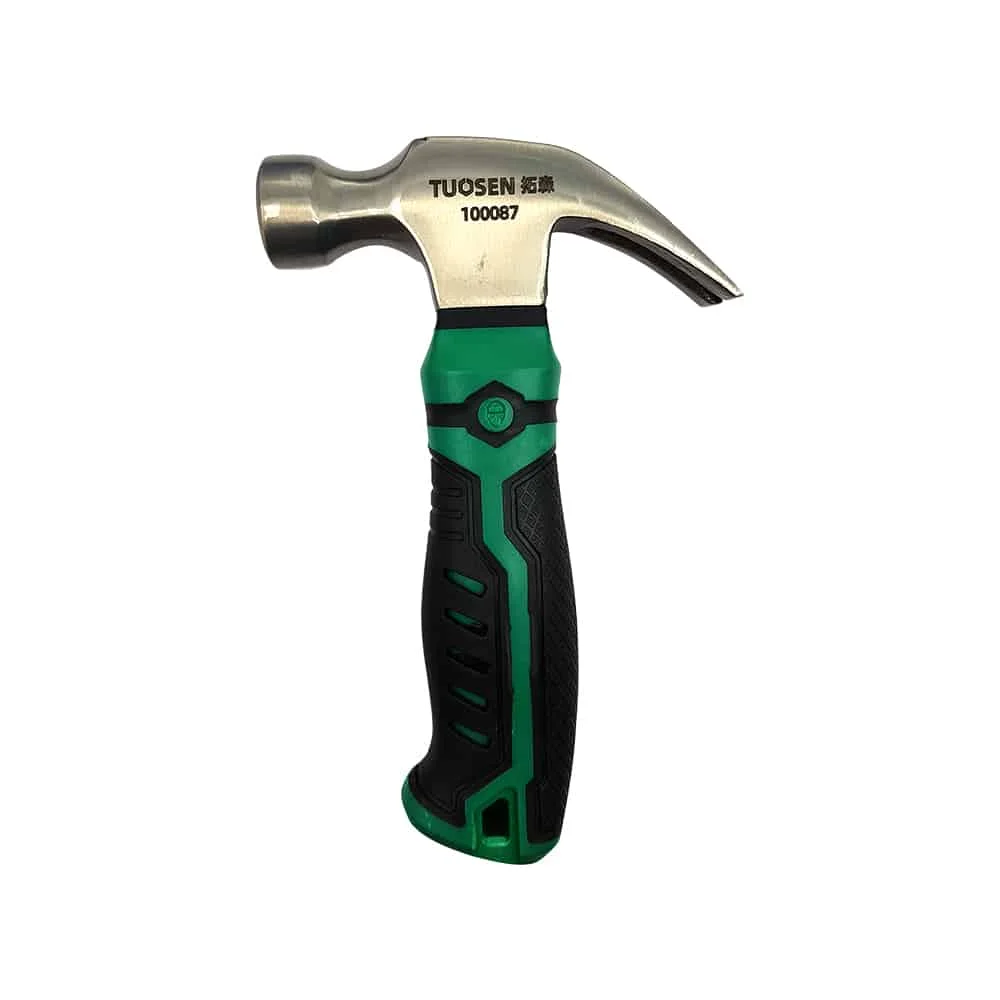 English name: TUOSEN 100087 Mini Claw Hammer — drop-forged steel head, short fibre/TPR anti-slip handle, compact size for precise nailing & prying.