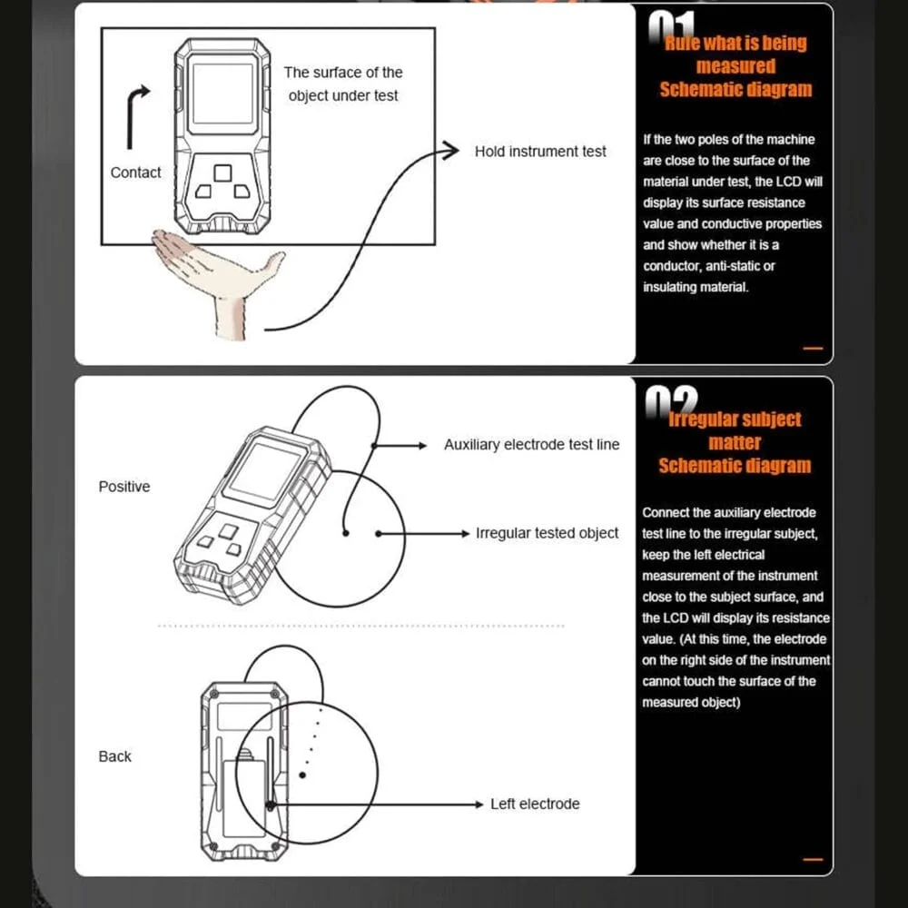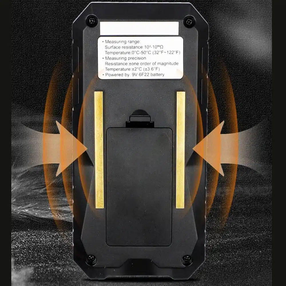 • محدوده اندازه‌گیری مقاومت: از 10^3 تا 10^12 اهم، با قابلیت تشخیص خودکار مقاومت سطحی مواد.