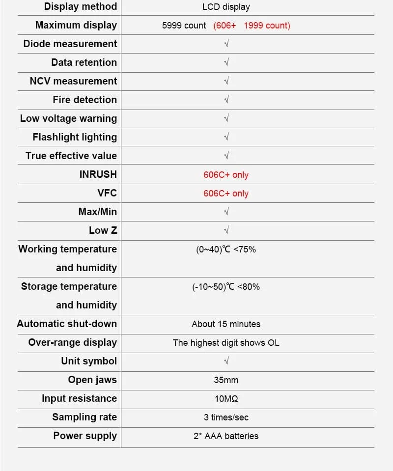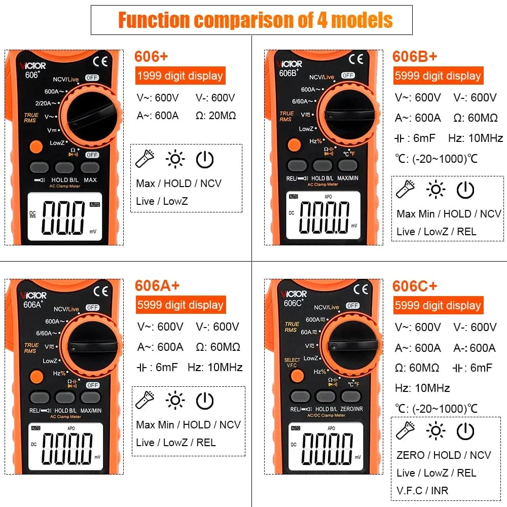 همان طور که از مطالعه مشخصات بالا گویا است، یکی از کامل ترین مولتی متر های کلمپی، مولتی متر کلمپی ویکتور مدل VICTOR 606C Plus، از نظر رنج و کامل بودن پارامتر های اندازه گیری می باشد. مولتی متری همه چیز تمام از برند شناخته شده ویکتور که سال هاست رتبه یک فروش مولتی متر در ایران را به خود اختصاص داده است.