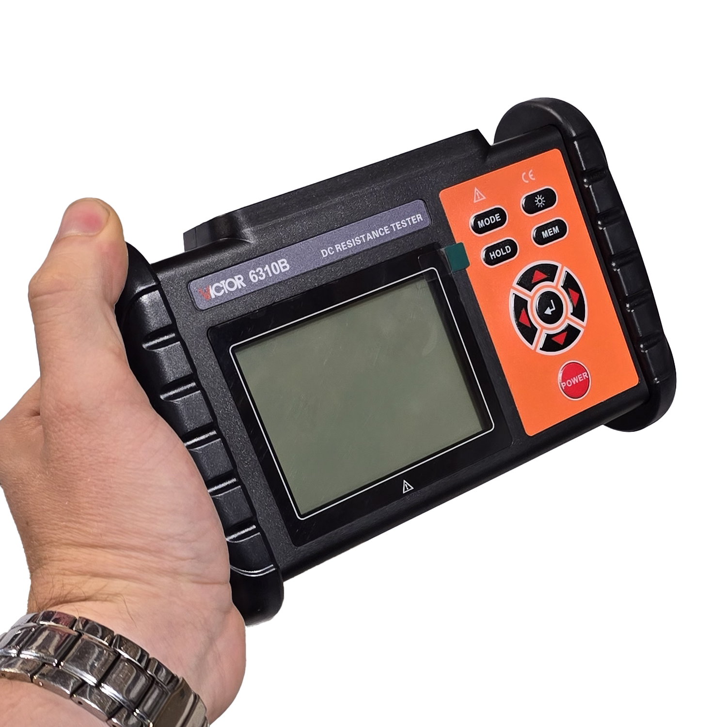 میکرو اهم متر دیجیتالی ویکتور مدل VICTOR 6310B یکی از پیشرفته‌ترین دستگاه‌های اندازه‌گیری مقاومت پایین (DC Low Resistance Tester) است که با بهره‌گیری از فناوری پردازشگر میکروکنترلری، دقت بالا و ایمنی در اندازه‌گیری را فراهم می‌کند. این دستگاه با سیستم اندازه‌گیری چهار سیمه، امکان حذف خطای ناشی از مقاومت سیم‌های اتصال را ارائه می‌دهد. رزولوشن 1µΩ و محدوده اندازه‌گیری 0.001mΩ تا 300KΩ، این دستگاه را به گزینه‌ای ایده‌آل برای مصارف صنعتی، مهندسی برق، الکترونیک و مخابرات تبدیل کرده است.