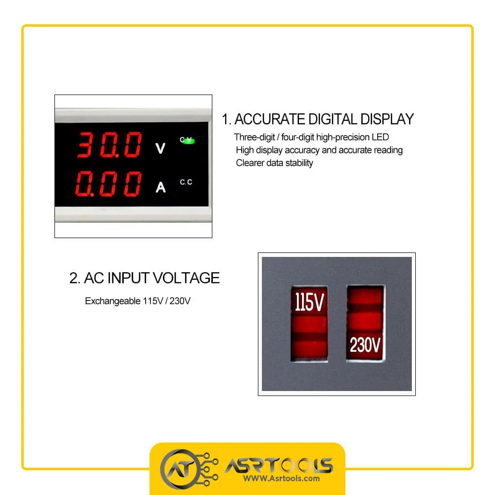 • خروجی ولتاژ 0~30 ولت با دقت 0.1V