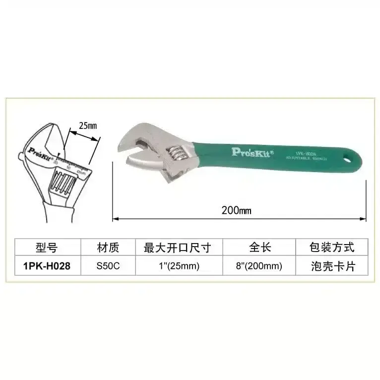 خرید آچارفرانسه 8 اینچی پروسکیت مدل ProsKit 1PK-H028