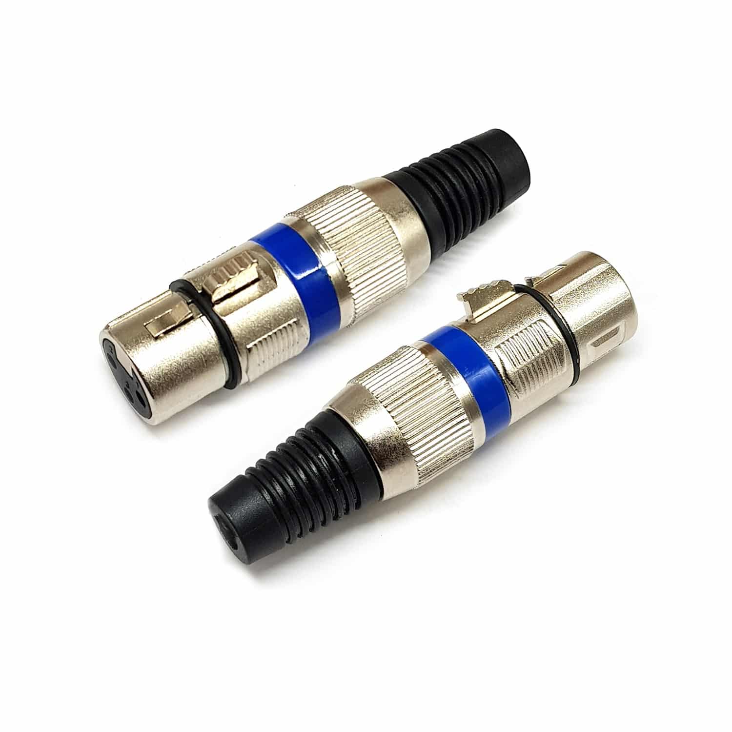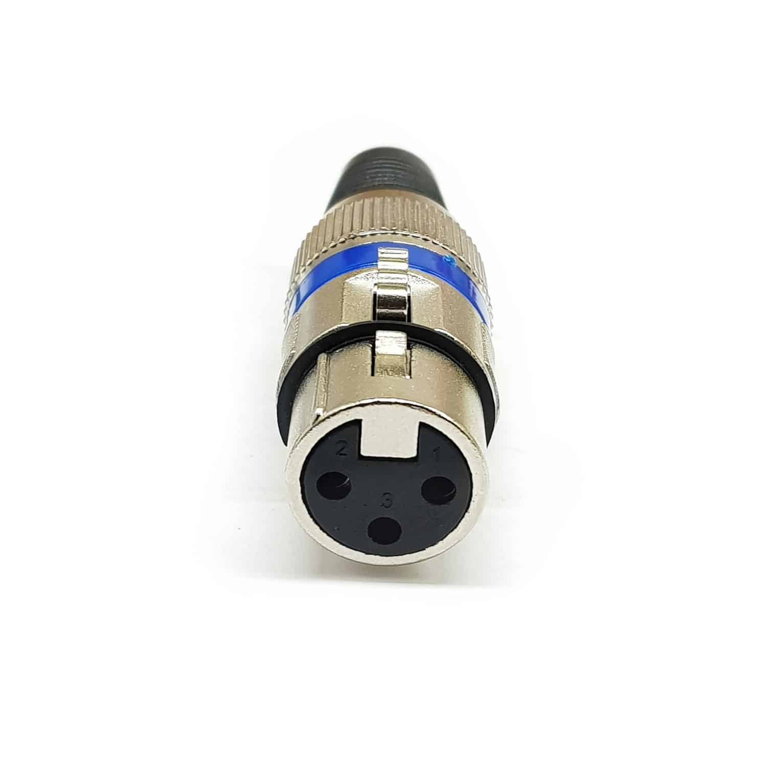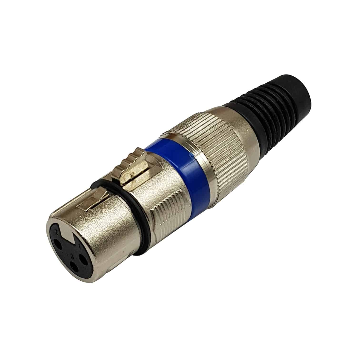 فیش کنون XLR مادگی سرکابلی دورنگ برای ساخت و تعمیر کابل‌های میکروفن، اتصال به میکسر، کارت صدا، رکوردر، آمپلی‌فایر و همچنین تجهیزات نورپردازی مبتنی بر DMX ایده‌آل است. طراحی سه‌پین آن انتقال سیگنال بالانس را ممکن می‌کند؛ یعنی نویز محیطی کمتر و صدایی تمیزتر در طول کابل‌های بلند. مکانیزم قفل فشاری از جدا شدن ناگهانی جلوگیری می‌کند و حلقه رنگی آبی کمک می‌کند کابل‌ها را سریع کُدگذاری و تفکیک کنید.